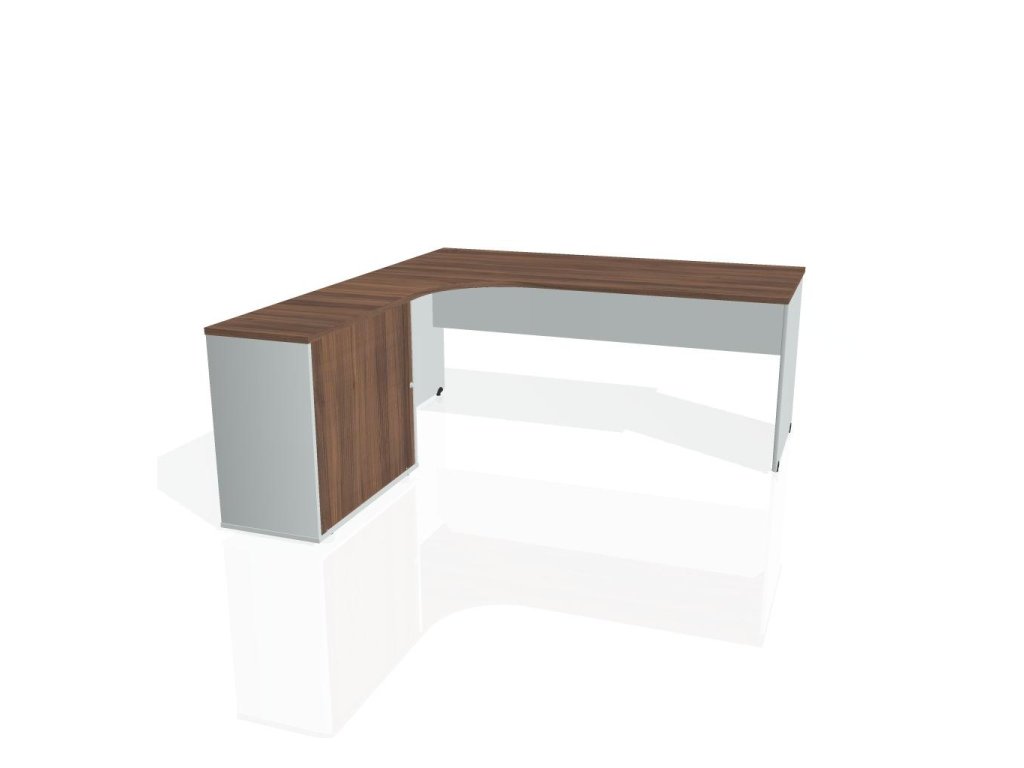 Pracovný stôl Gate, ergo, pravý, 180x75,5x200 cm, orech/sivá