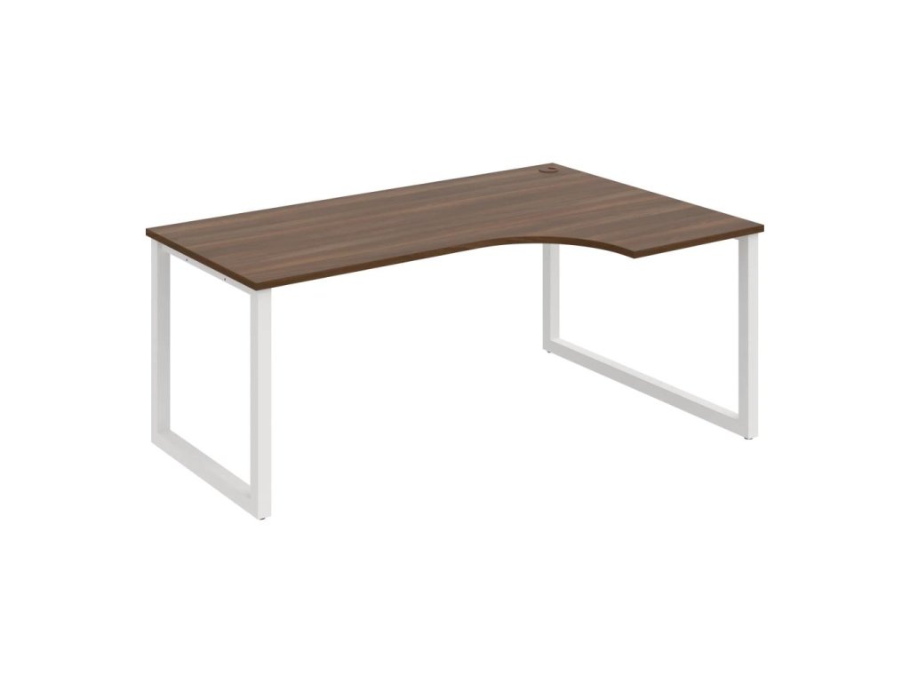 Pracovný stôl UNI O, ergo, ľavý, 180x75,5x120 cm, orech/biela
