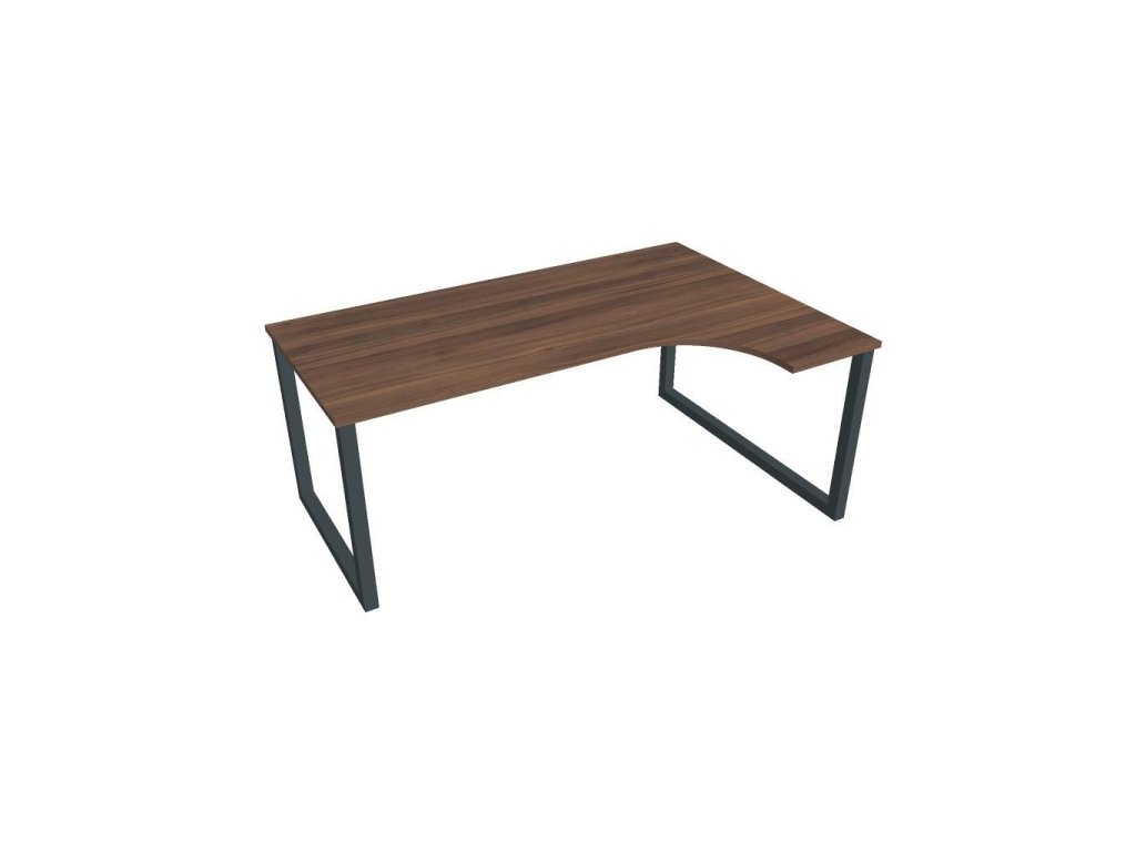 Pracovný stôl UNI O, ergo, ľavý, 180x75,5x120 cm, orech/čierna