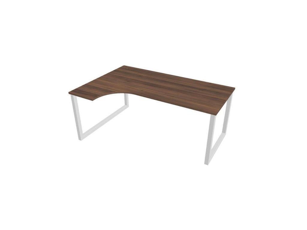 Pracovný stôl UNI O, ergo, pravý, 180x75,5x120 cm, orech/biela