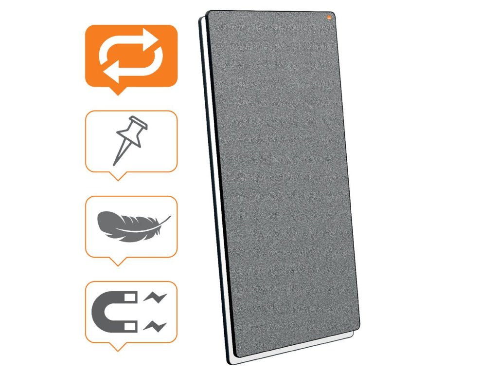 System Move & Meet ponúka maximálnu flexibilitu v akomkoľvek pracovnom prostredí a je ľahko nakonfigurovaný tak, aby dokonale vyhovoval vašim potrebám. Táto ľahká prenosná obojstranná magnetická tabuľa a nástenka je dokonalým doplnkom k systému, ktorý vám poskytne ďalšie plochy na písanie a nástenky. Tabuľa a poznámková tabuľa majú moderný a inovatívny zakrivený rohový dizajn s jemným čiernym lemom, ktorý doplní každé prostredie. Rozmer dosky 1800 x 900 mm.