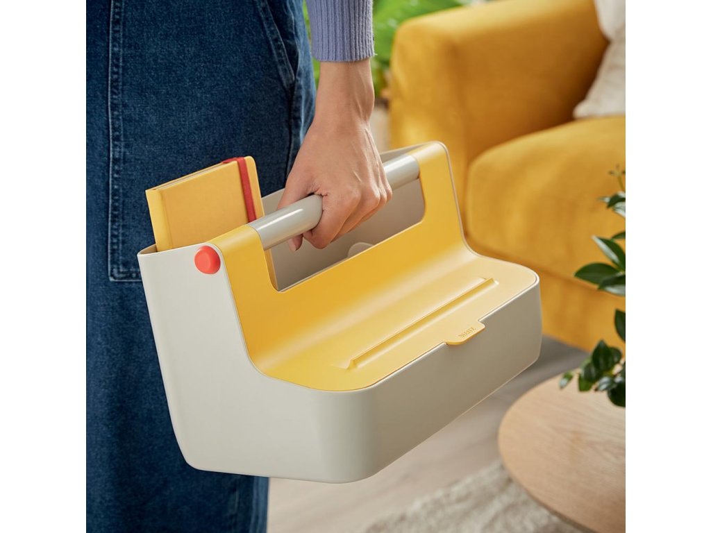 Ľahký a ľahko prenosný úložný box vďaka robustnej rukoväti vystuženej hliníkom. Veko poskytuje uprataný vzhľad a väčšie súkromie, ale dá sa doširoka otvoriť pre ľahký prístup k obsahu. Inteligentné delenie priehradky pre lepšiu organizáciu a rýchly prístup k pomôckam, široká zadná priehradka na uloženie dokumentov veľkosti A4. So zdvihnutím