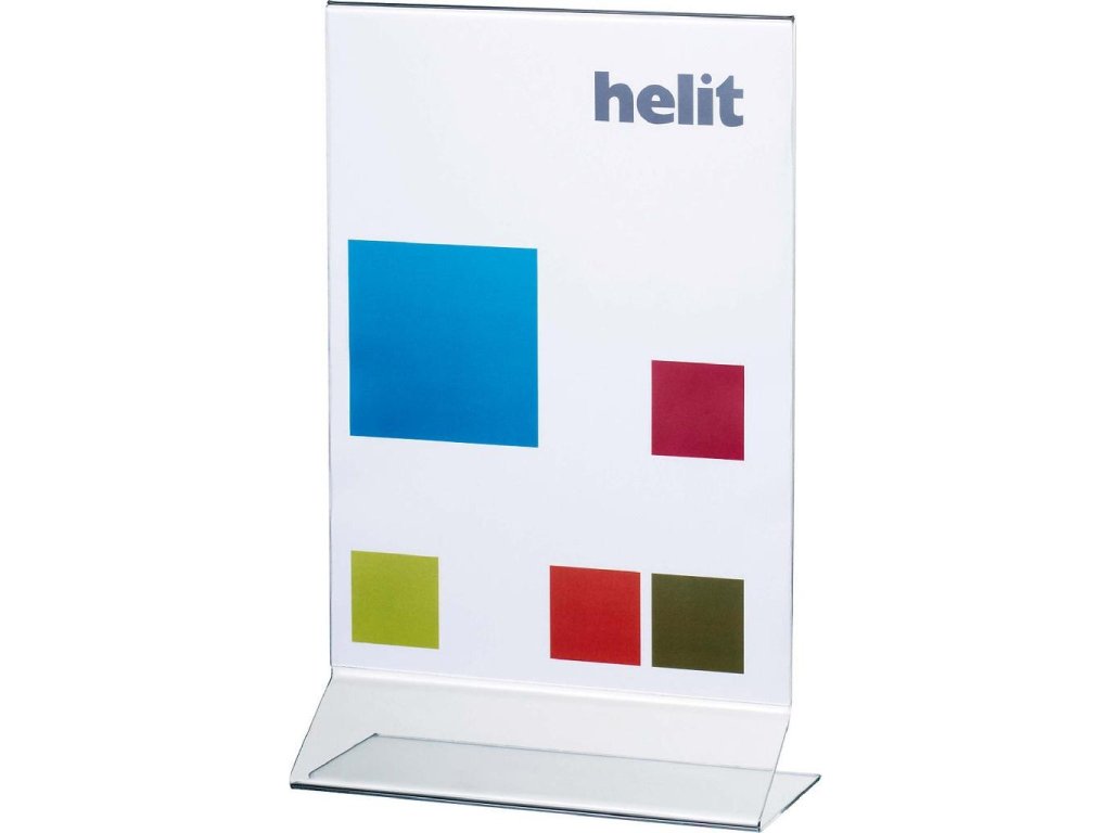 Univerzálny kolmý stojan vhodný na výstavy, veľtrhy, ponukové listy, jedálne lístky a propagačné materiály. Vyrobený z vysoko kvalitného číreho akrylu, veľmi stabilný a pevný, odolný voči odretiu. Formát A4.
