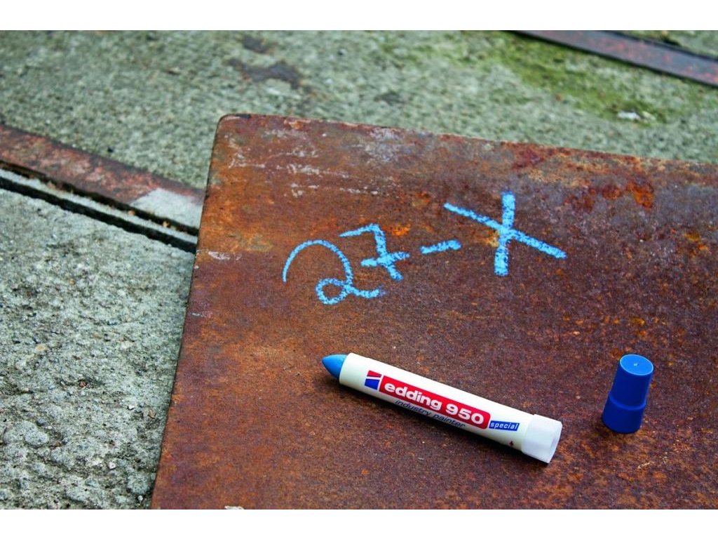 Farebná pasta so silne krycími účinkami a vysokou trvanlivosťou. Zvlášť vhodná na popisovanie pórovitých povrchov, zašpinených materiálov a hrdzavých kovov. Svetlostála, nezmazateľná, po zaschnutí vodeodolná. Možno použiť aj na písanie na čistých povrchoch pod vodou. Šírka stopy 10 mm. Väčšie balenie 10 ks.