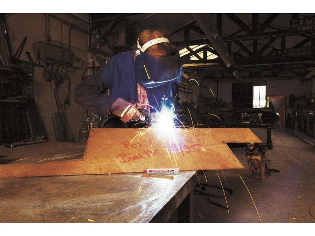 Farebná pasta so silne krycími účinkami a vysokou trvanlivosťou. Zvlášť vhodná na popisovanie pórovitých povrchov, zašpinených materiálov a hrdzavých kovov. Svetlostála, nezmazateľná, po zaschnutí vodeodolná. Možno použiť aj na písanie na čistých povrchoch pod vodou. Šírka stopy 10 mm. Väčšie balenie 10 ks.