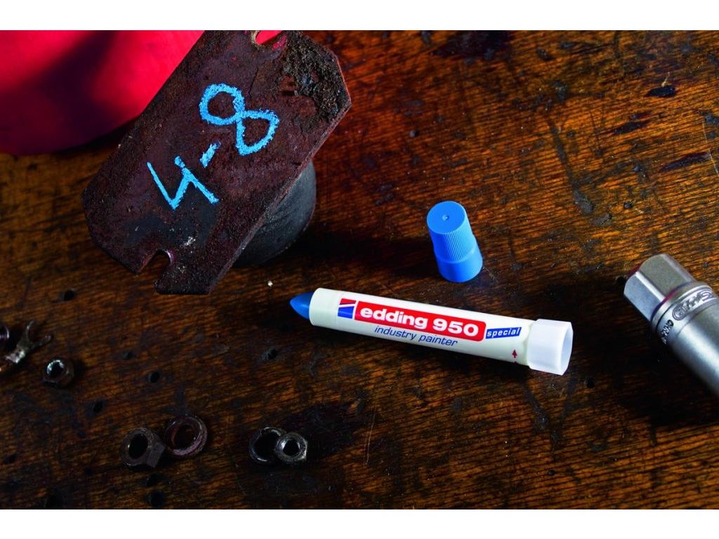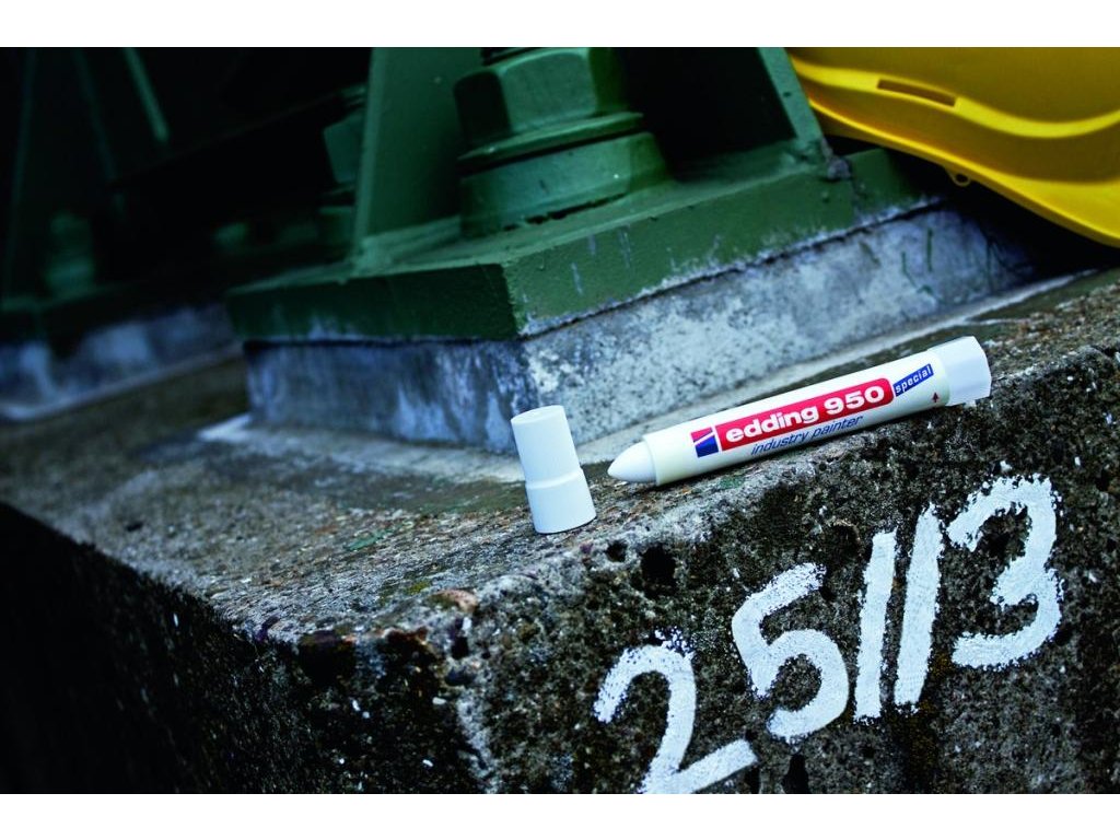 Farebná pasta so silne krycími účinkami a vysokou trvanlivosťou. Zvlášť vhodná na popisovanie pórovitých povrchov, zašpinených materiálov a hrdzavých kovov. Svetlostála, nezmazateľná, po zaschnutí vodeodolná. Šírka stopy 10 mm. Väčšie balenie 10 ks.