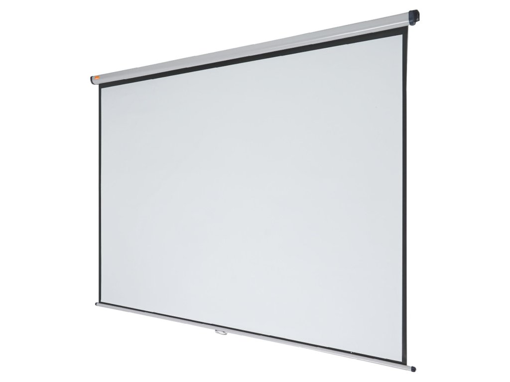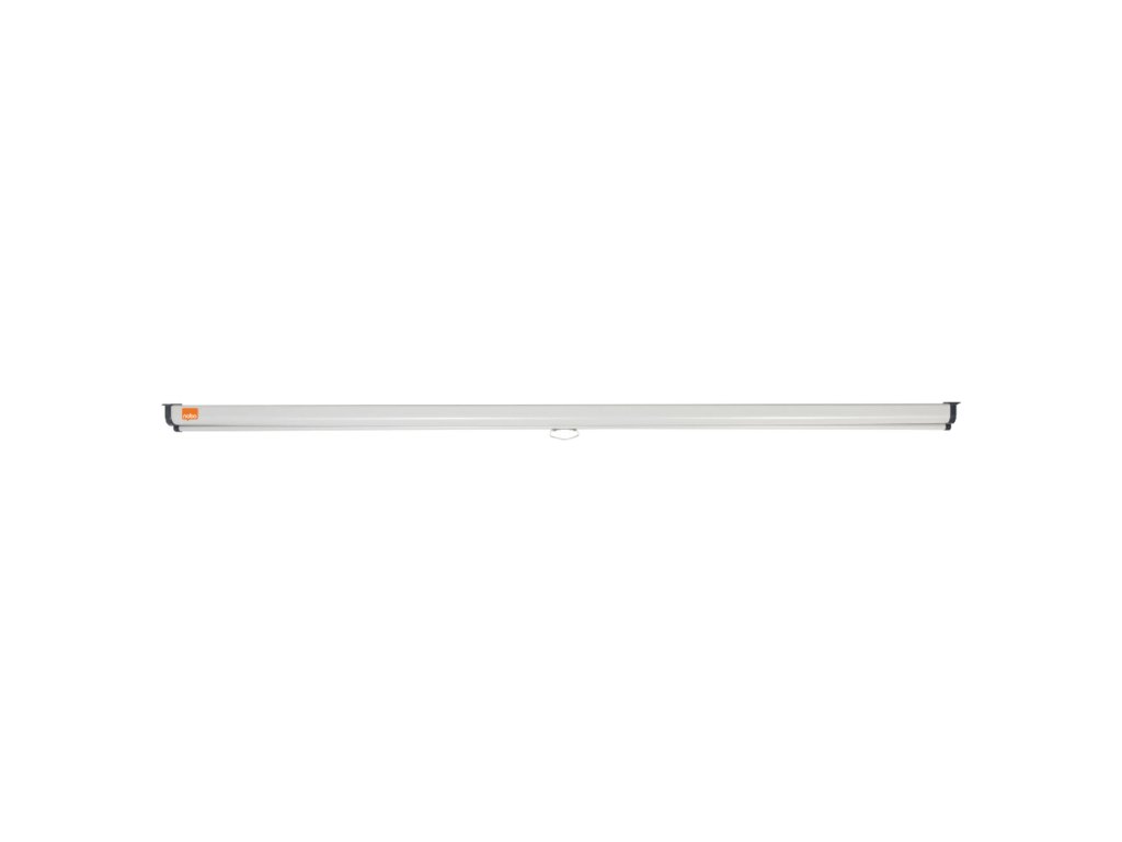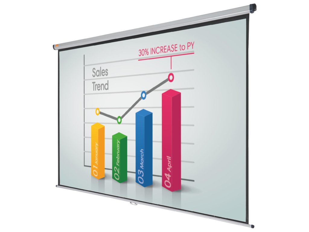 Žiarivý matne biely povrch plátna zaručuje ostrý, podrobný obraz, ktorý zreteľne uvidia všetci diváci. Dá sa ľahko zasunúť do puzdra, aby bolo chránené pred poškodením, alebo uložené, keď nie je používané. Doplnkové držiaky umožňujú inštalovať plátno pred popisovaciu tabuľu alebo ho skloniť smerom k divákom. 2400 × 1813 mm.