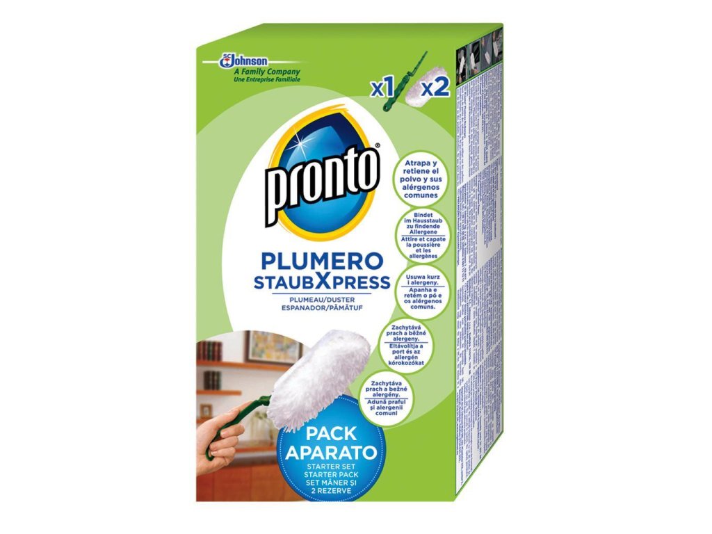 Prachovka Pronto predstavuje pohodlný a účinný spôsob utierania prachu z nábytku a ťažko dostupných miest. Dlhé chlpaté vlákna sa dostanú do medzier a štrbín, vďaka roztiahnuteľnej rukoväti možno utierať prach na ťažko prístupných miestach. Prachovka sa dá ľahko vyprášiť. Balenie obsahuje: 2 ks