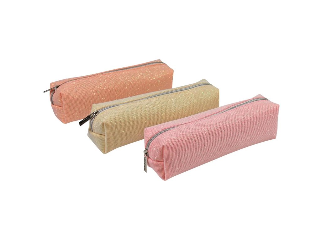 Puzdro na perá so zipsom v glittrovom prevedení. Mix farieb. Rozmery: 20 x 5,5 x 5 cm.