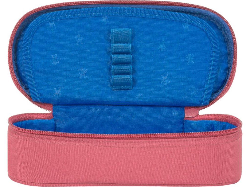 Vodeodolná polyesterová tkanina, tmavo modrá podšívka s vyrazeným vzorom leva. Klopa s integrovaným vreckom a pútkami na pero. Hlavné vrecko na zips. Rozmery 23,5 x 8,5 x 5 cm.