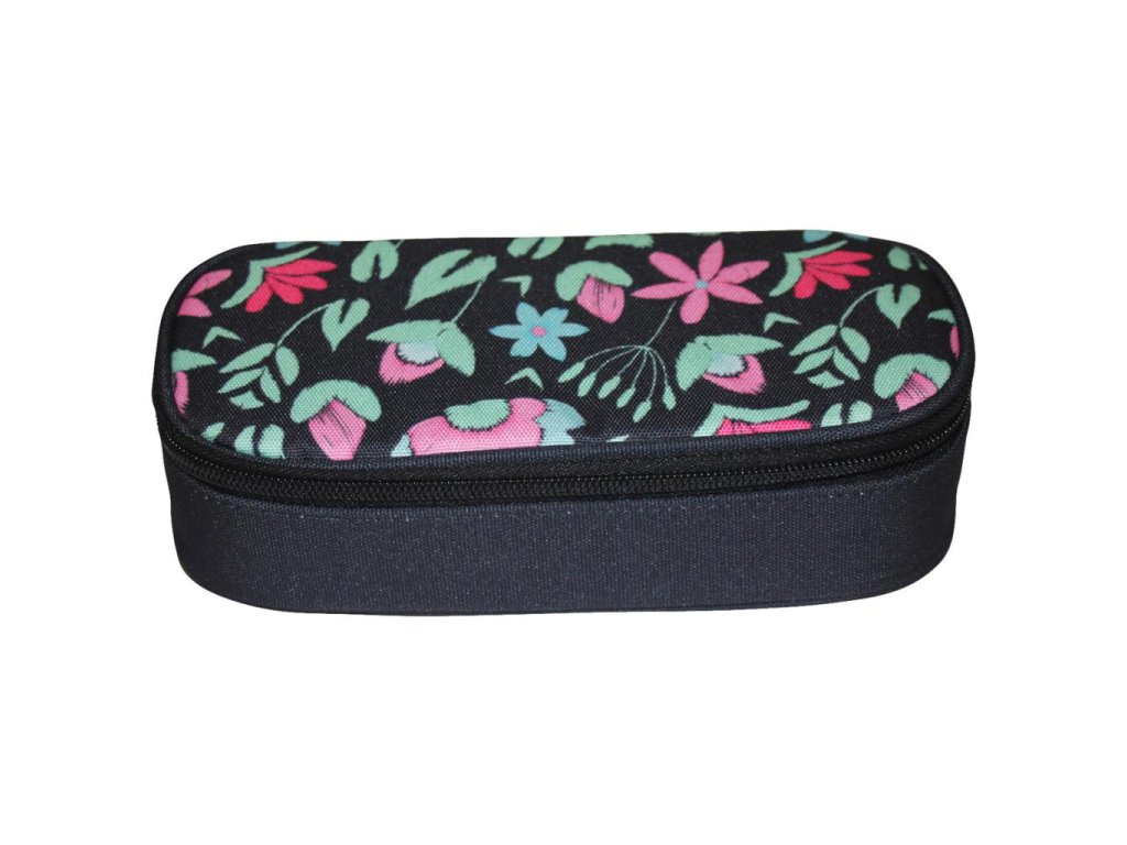 Oválny peračník na zips, 1 vnútorná chlopňa s pútkami na pero, bez náplne, materiál polyester, Š x V x H: 21 x 5,5 cm. Motív Srdce a Kvety.
