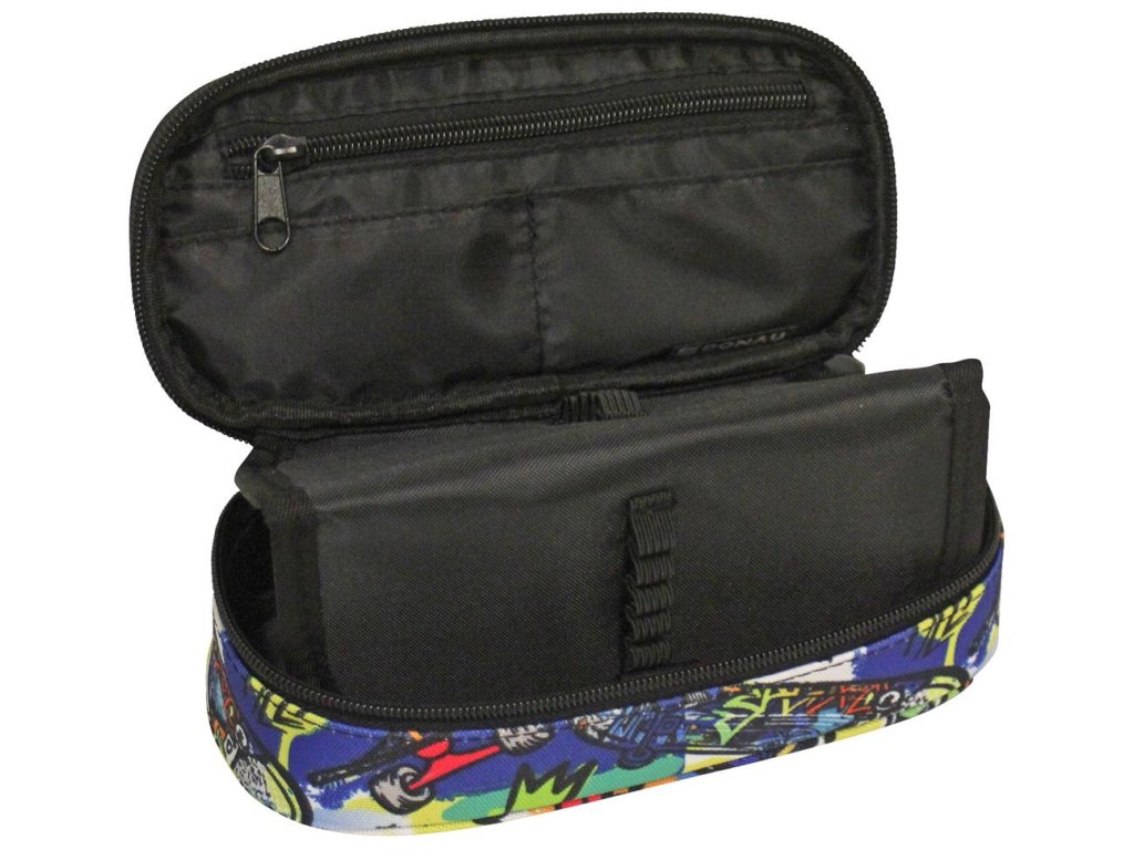 Oválny peračník na zips, 1 vnútorná chlopňa s pútkami na pero, bez náplne, materiál polyester. Rozmery: Š x V x H: 21 x 5,5 x 10,5 cm. Motív Skater.
