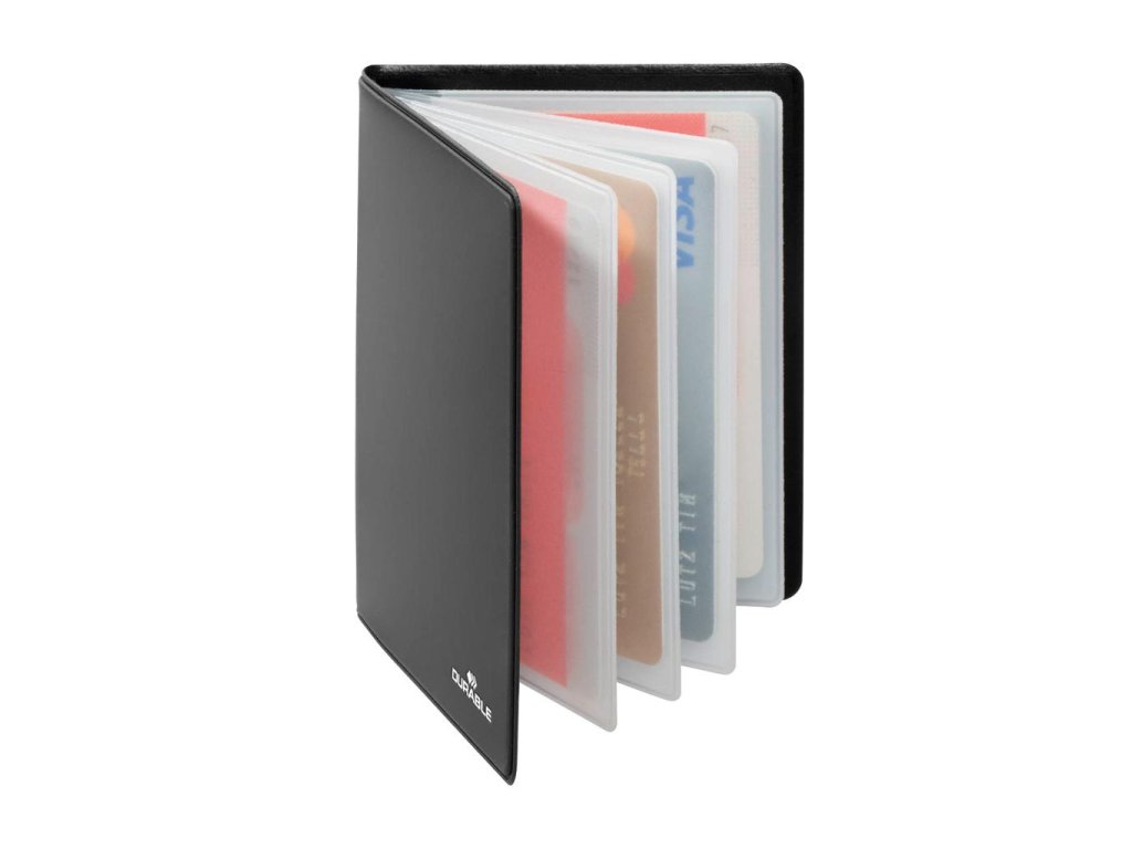 Ochranné puzdro na 8 kreditných kariet s ochranou proti neoprávnenému čítaniu osobných údajov. Vnútorné rozmery 86 × 54 mm, vonkajšie rozmery 102 × 75 mm. Farba čierna.