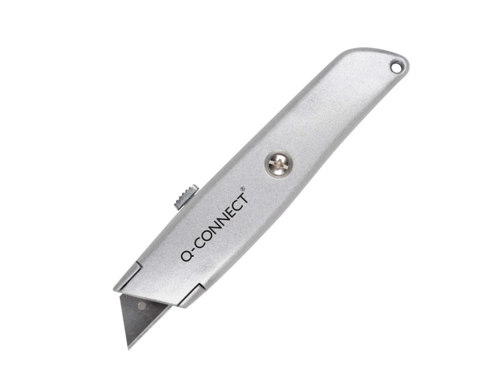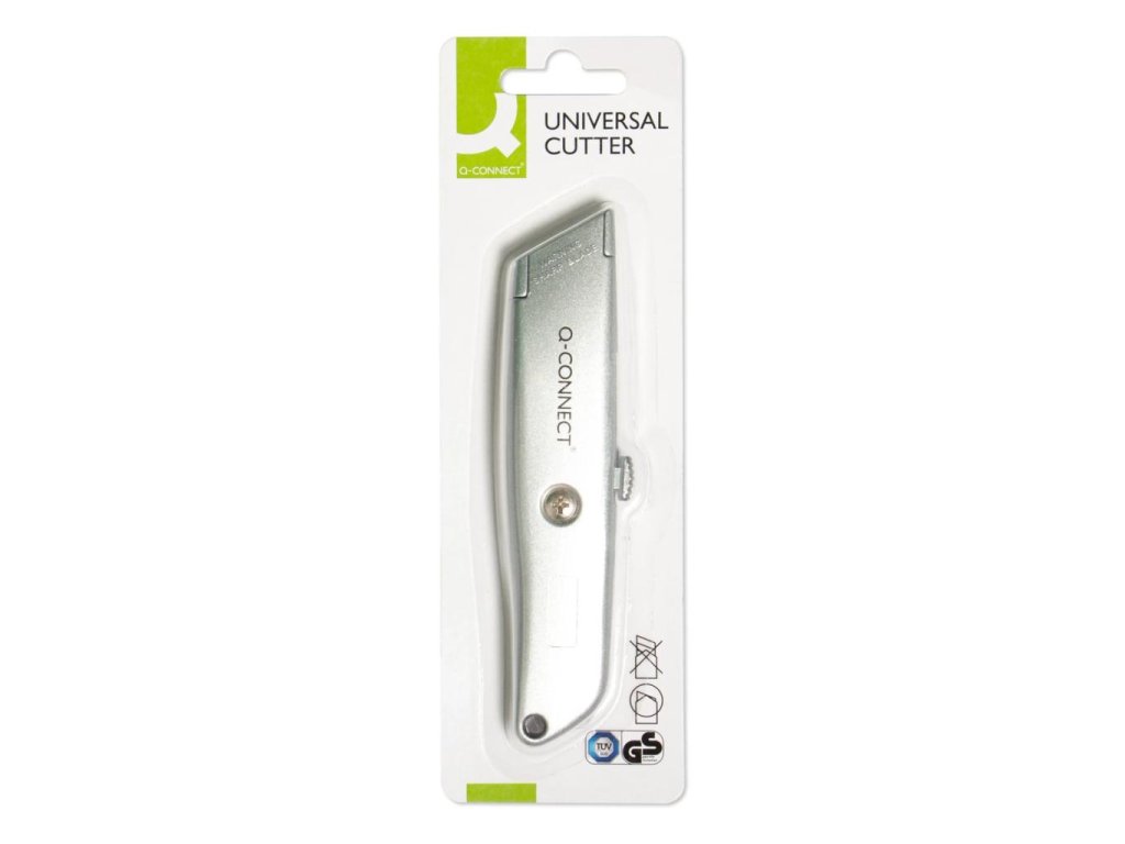 Robustný celokovový rezač s otvorom na zavesenie a bezpečnostnou poistkou. Šírka čepele 18 mm.