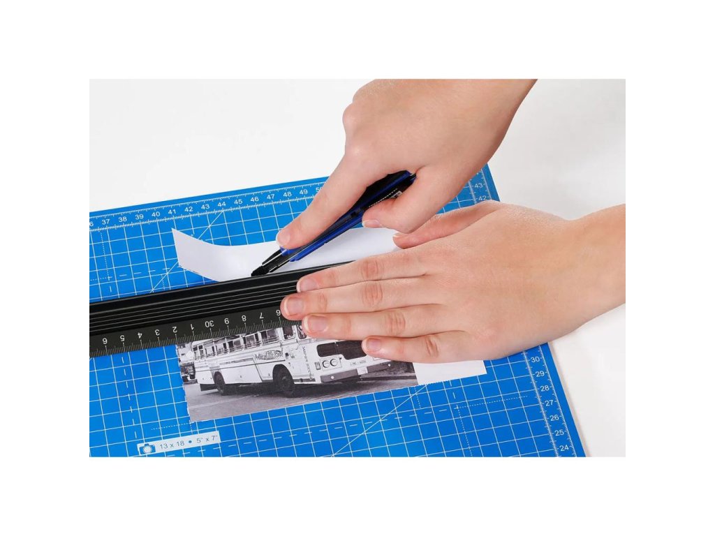Obojstranná rezacia podložka s robustnou 5-vrstvovou konštrukciou s jadrom odolným proti prerezaniu, s predtlačenou mriežkou na jednej strane a protišmykovou stranou, poskytuje čisté a precízne rezanie a chráni pracovný povrch pred dorezaním.