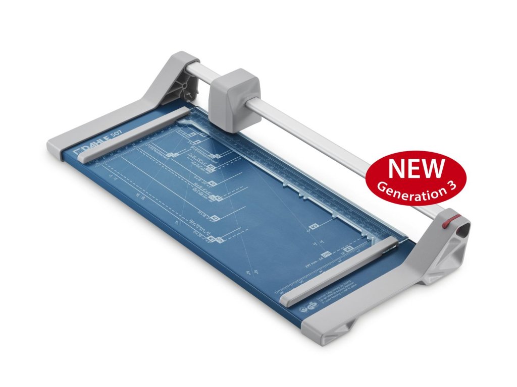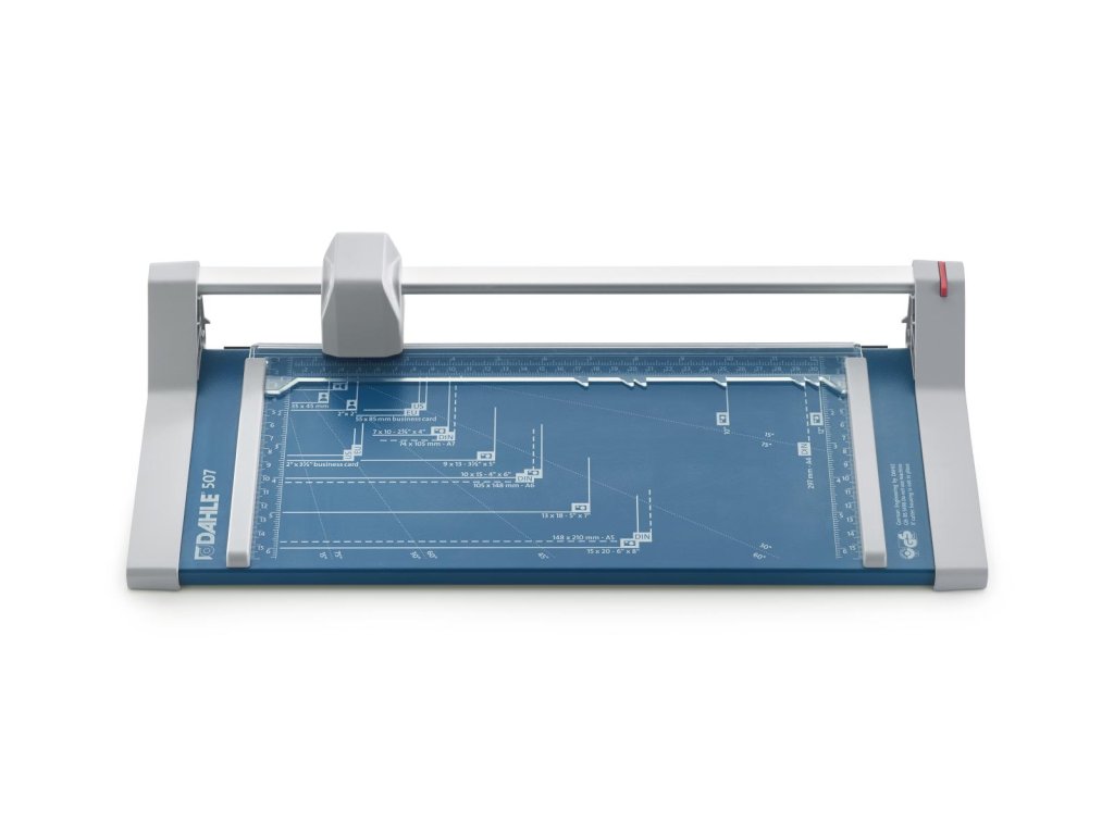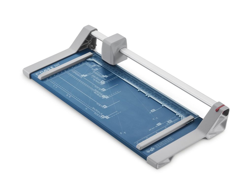 Rezačka s kruhovým nožom a kovovou základňou. Rotačný nôž v plastovom kryte, automatický prítlak, mierky v cm a DIN formátoch. Vhodná na rezanie papiera, etikiet, fotiek a filmov.