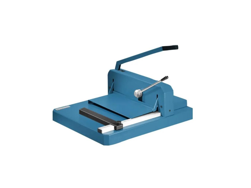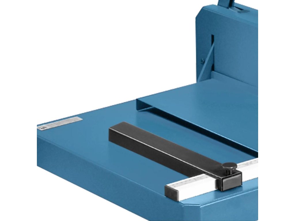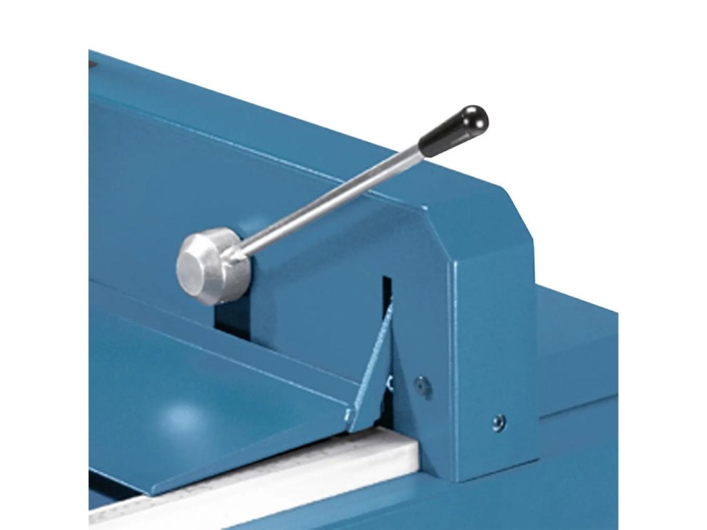 Profesionálna veľkokapacitná rezačka veľkej presnosti, rýchlosti a praktickej funkčnosti, vybavená vysokým stupňom bezpečnosti. Brúsený vrchný a spodný nôž z kvalitnej nožiarskej ocele Solingen, kovový bezpečnostný ochranný kryt, zverák papiera, bočný a zadný doraz. Nastaviteľný kovový doraz pre rýchle nájdenie správneho formátu. Minimálny rez 35 mm. Mierka v cm/inch a DIN formátoch. Voliteľné príslušenstvo stojan.