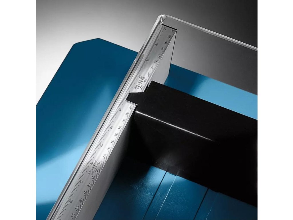 Výkonná a odolná veľkokapacitná rezačka veľkej presnosti, rýchlosti a praktickej funkčnosti, vybavená vysokým stupňom bezpečnosti, až na 600 listov papiera. Brúsený vrchný a spodný nôž z kvalitnej nožiarskej ocele Solingen, priehľadný bezpečnostný ochranný kryt, zverák papiera, bočný a zadný doraz, ovládaný kľukou. Minimálny rez 40 mm. Mierka v cm/inch a DIN formátoch. Vizuálny indikátor rezu pre profesionálne výsledky rezania
