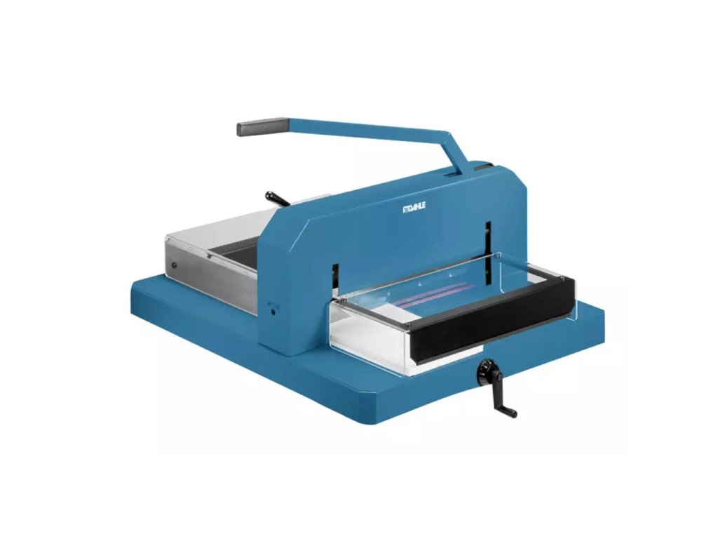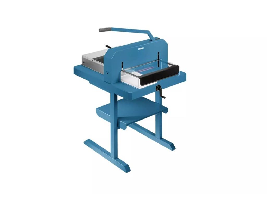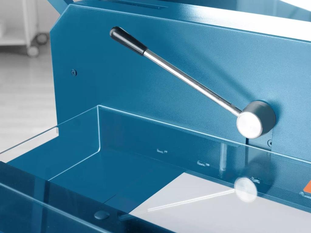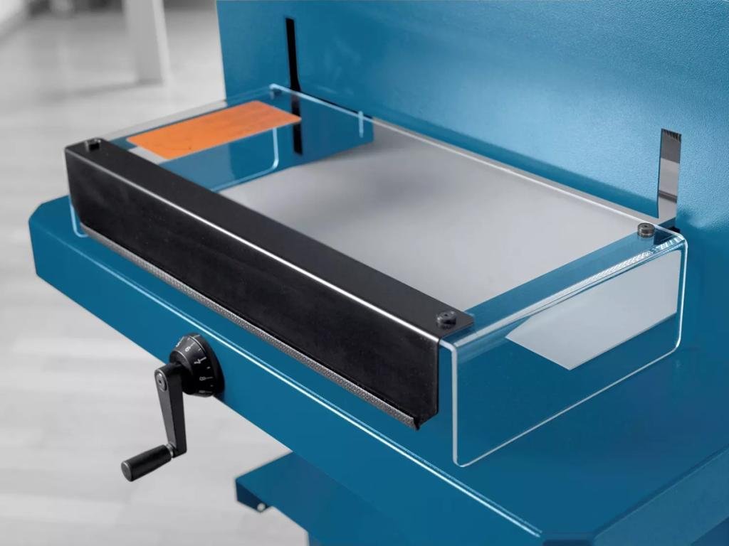 Vysokokalitná vysokovýkonná rezačka veľkej presnosti, rýchlosti a praktickej funkčnosti, vybavená vysokým stupňom bezpečnosti. Robustný kovový stôl poskytuje stabilnú základňu pri rezaní. Robustná rukoväť pre jednoduché rezanie. Brúsená horná čepeľ z kalenej ocele Solingen - prebrúsiteľná. Brúsený vrchný a spodný nôž z kvalitnej nožiarskej ocele Solingen, priehľadný bezpečnostný ochranný kryt, zverák papiera, bočný a zadný doraz, ovládaný kľukou. Rýchlotlačná páka pre efektívne pracovné procesy. Presné stupnice s mm stupnicou pre presný 90° rez. Samoaretačný kovový doraz s vretenom, ktorý vám pomôže rýchlo nájsť správny formát. Minimálny rez 40 mm. Mierka v cm/inch a DIN formátoch. Voliteľné príslušenstvo - praktický stojan s odkladacím priestorom a optimálnou pracovnou výškou 74 cm.