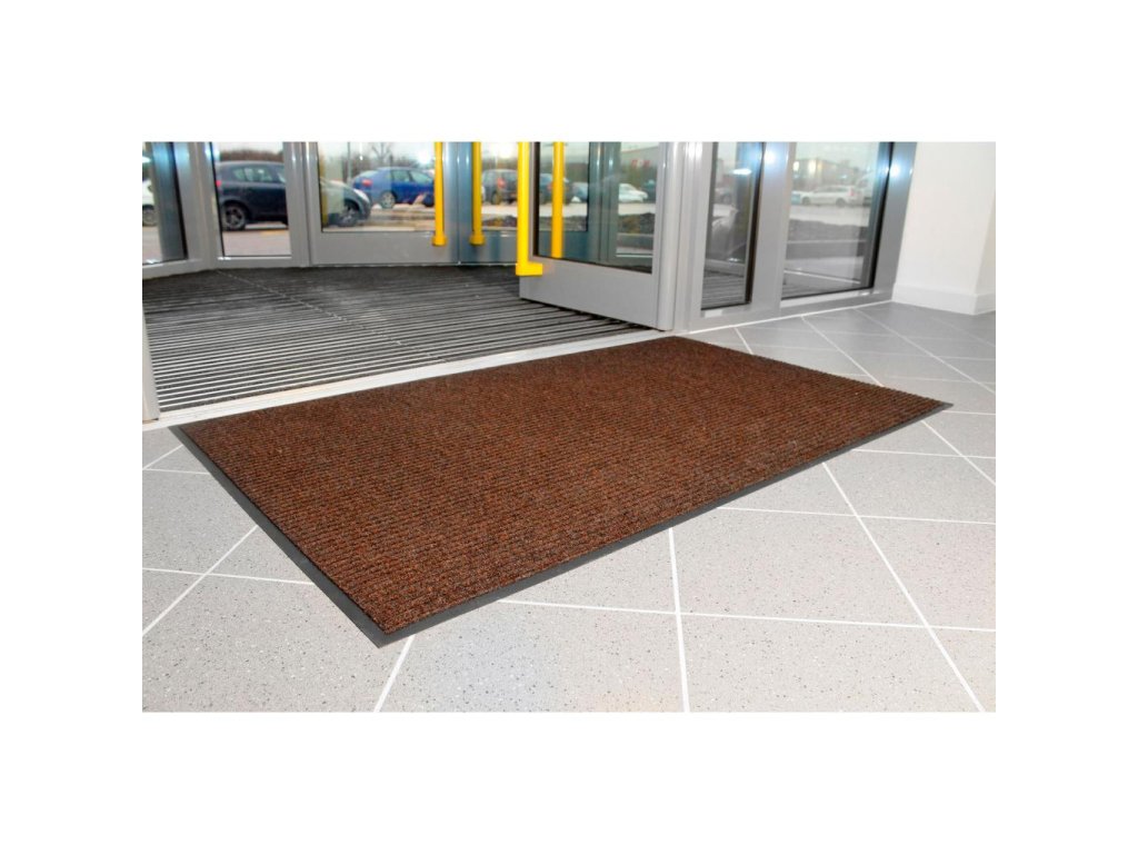 Vstupná rohož s rebrovaným povrchom, ktorý je určený pre náročné vstupné zóny. Vytvára „kanáliky“ na zachytenie špiny a nečistôt a vysušuje vlhkosť z podrážok, čím zvyšuje bezpečnosť chôdze na hladkej podlahe. Vhodná do vstupných priestorov, hál a chodieb. Vlas zo 100% polypropylénu, spodná strana rohože z PVC s ochranou proti znečisteniu a pošmyknutiu. Výška 9 mm. Trieda horľavosti podľa európskej normy EN 13501-1. Rozmery 60 x 90 cm. Farba hnedá.