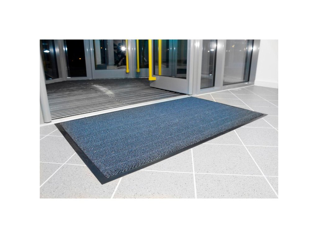 Ekonomická a účinná stieracia rohož vhodná do vstupných priestorov, hál a chodieb. Rubová strana z PVC s úpravou proti pošmyknutiu a znečisteniu, materiál vlasu je 100 % polypropylén. Výška 7 mm. Rozmery 60 x 90 cm. Farba čierna/modrá.