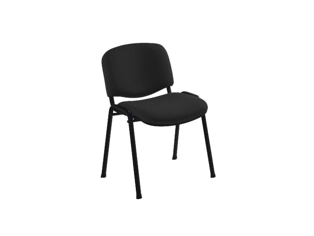 Stohovateľná konferenčná stolička s látkovým poťahom, sedadlo so spodním plastovým krytom.
