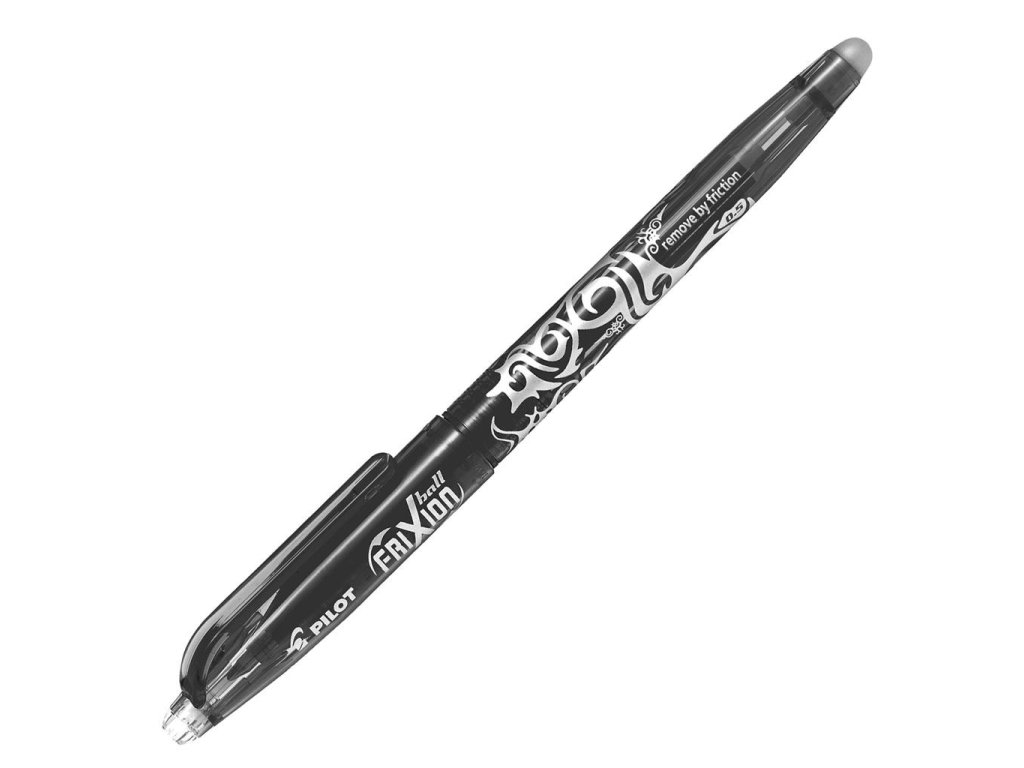 Píšte hladko s FriXion Ball, vygumujte pomocou gumy FriXion umiestnenej v zakončení pera bez poškodenia papiera a ihneď prepíšte. Unikátny gélový atrament reaguje na teplo generované trením a umožňuje vám okamžite prepísať chybu pomocou rovnakého pera. Hrot 0,5 mm poskytuje šírku stopy 0,25 mm. Vymeniteľná náplň, priemer hrotu v mm: 0,50 mm. Farba čierna.