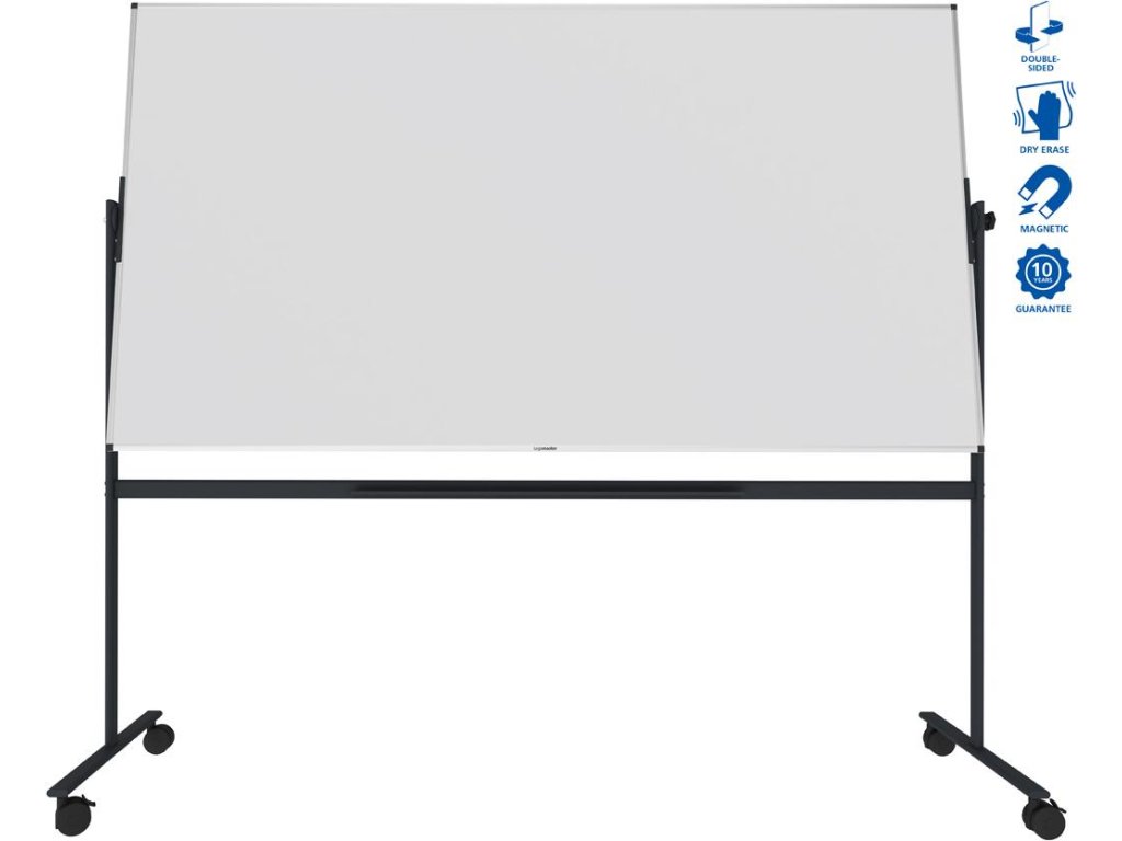 Základná rotačná tabuľa na príležitostné použitie v kancelárii, triede alebo v priemyselnom prostredí. Vhodná na písanie popisovačmi na tabuľu stierateľnými za sucha. Obojstranný, magnetický, lakovaný oceľový povrch dosky. Hliníkový rám so sivými plastovými rohovými krytkami. Upevnený na robustnom a mobilnom stojane s otočnou osou. Súčasťou balenia je odkladacia lišta. Rozmery v × š : 120 × 220 cm.