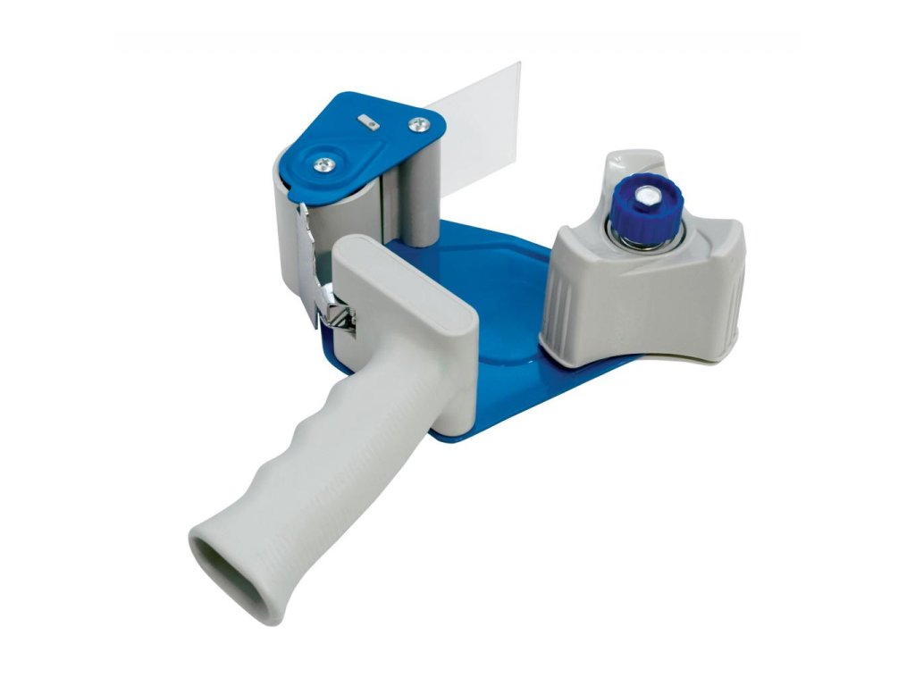 Ručný odvíjač na pásky šírky 50 mm s jednoduchým použitím. Brzdička udržuje pri lepení pásku stále napnutú, naklopením kolmo na krabicu pásku odtrhnete.