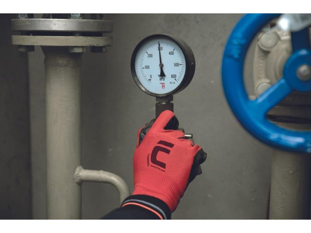 Pletené, bezšvové, nylonové rukavice (15GG • máčené v latexu na dlani a na prstoch • pružná manžeta)