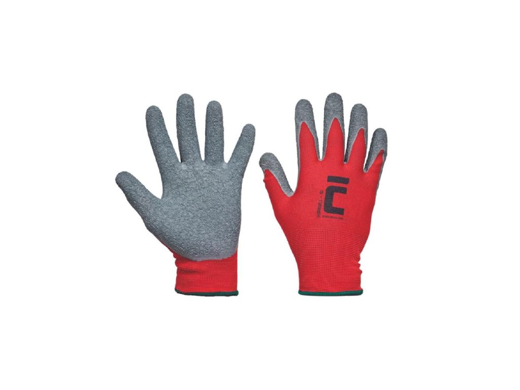 Pletené, bezšvové, nylonové rukavice (15GG • máčené v latexu na dlani a na prstoch • pružná manžeta)