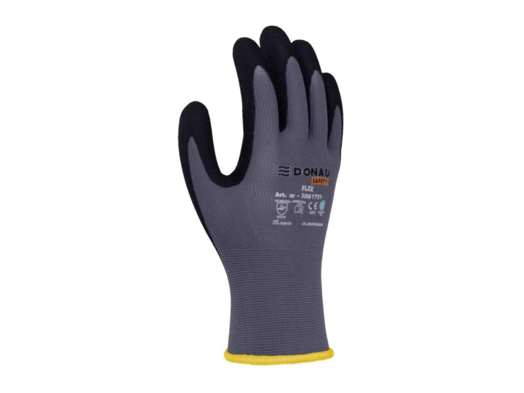 Rukavice pletené, polomáčané DONAU SAFETY Flex, kat. II šedé veľ. 9