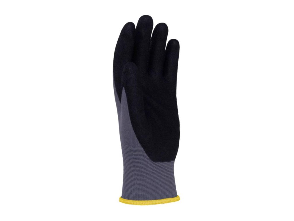 rukavice z kvalitnej pletenej nylonovej tkaniny s elastanom v šedej farbe, v úchopovej časti potiahnuté ultra jemnou nitrilovou penou čiernej farby
