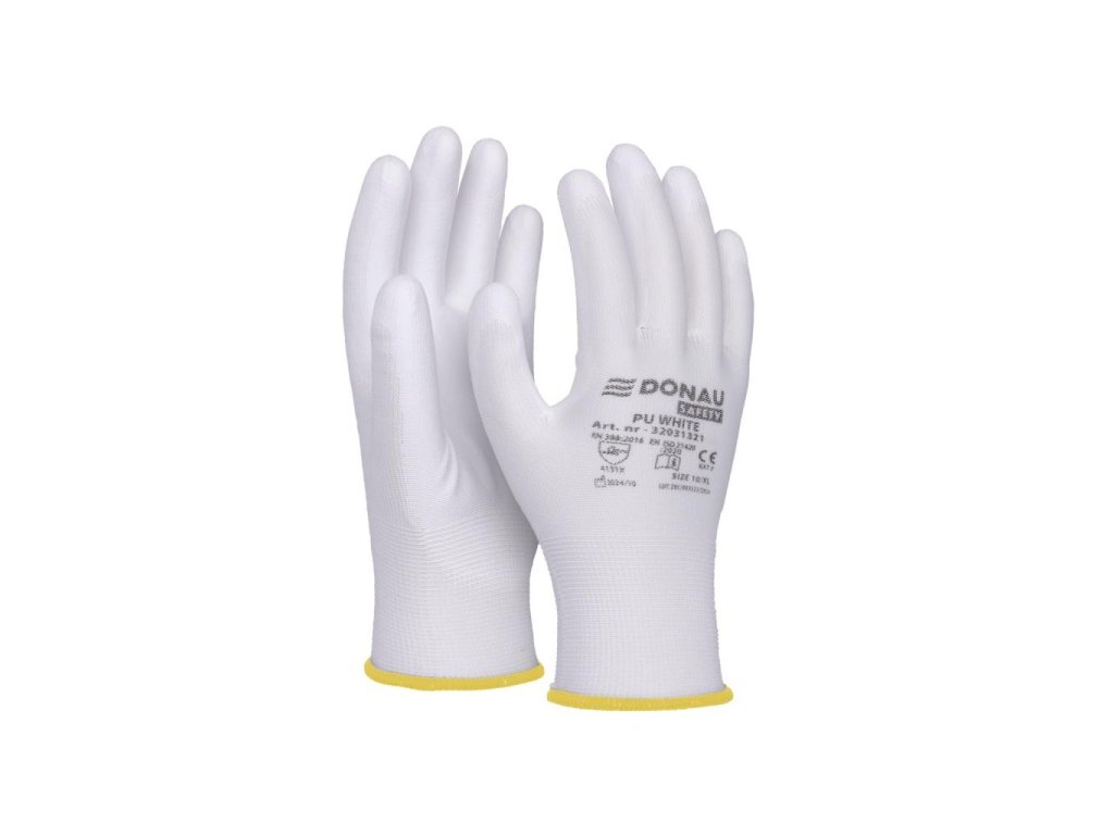 Rukavice pletené, polomáčané DONAU SAFETY PU kat. II biele veľ. 10