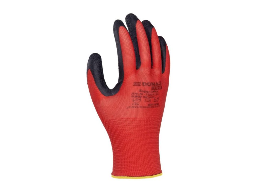Rukavice pletené, polomáčané DONAU SAFETY Super Latex kat. II červené veľ. 10