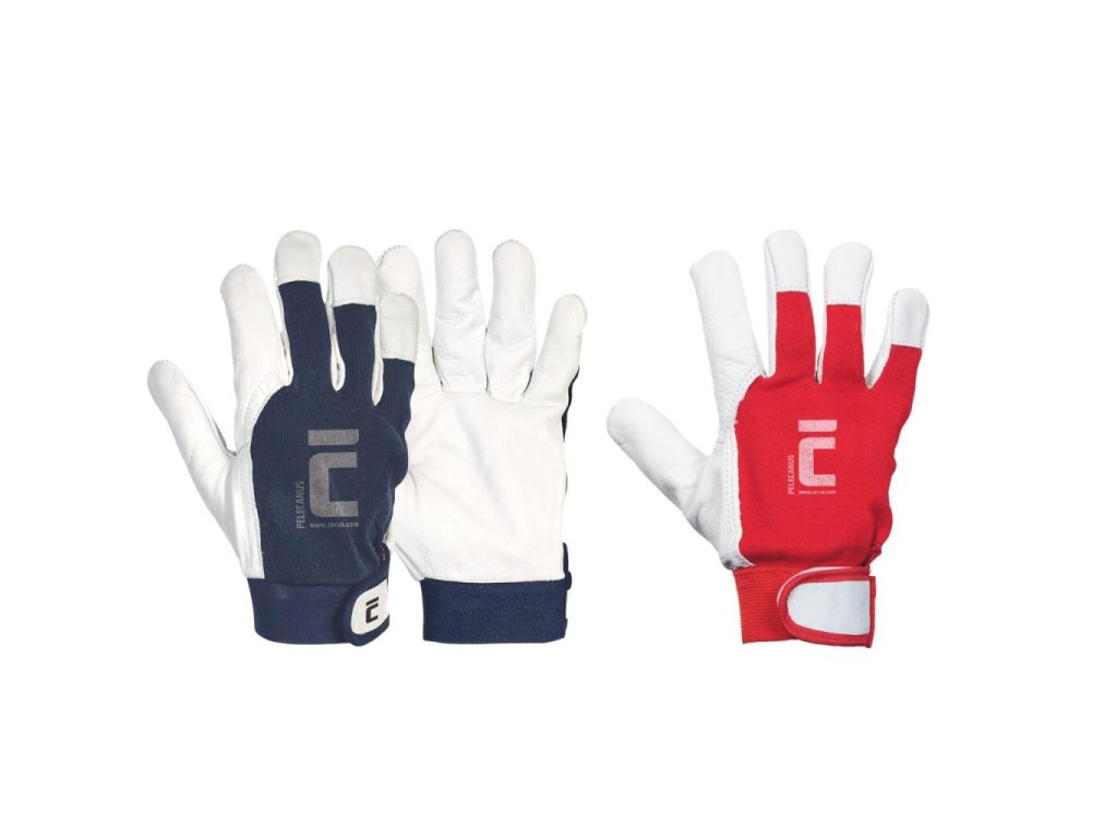 Rukavice pracovné, kombinované PELECANUS, červené/modré veľ. 6/XS