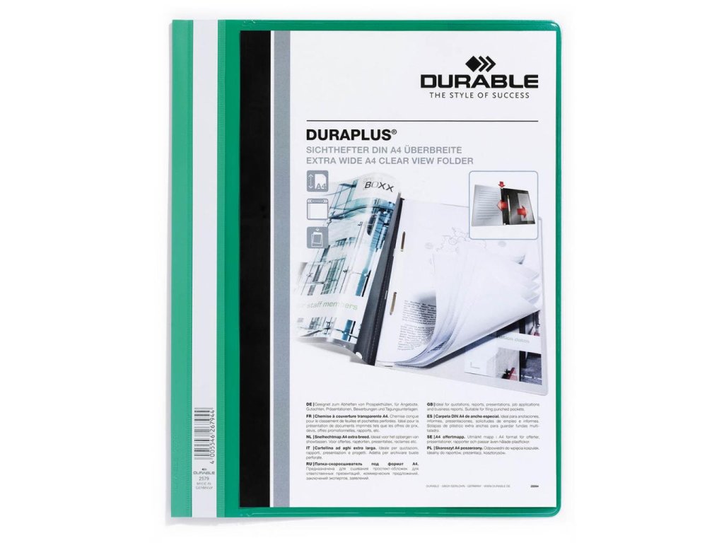Rýchloviazač DURABLE Duraplus zelený Priehľadný zakladač