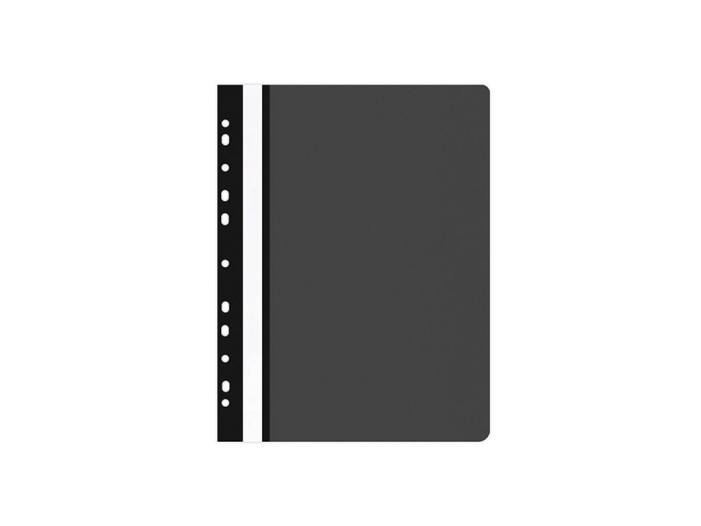 Rýchloviazač PP formátu A4 s priehľadnou prednou stranou a eurodierovaním. Farba matná čierna.