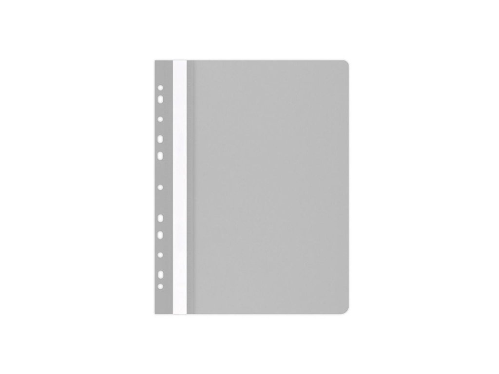 Rýchloviazač PP formátu A4 s priehľadnou prednou stranou a eurodierovaním. Farba matná sivá.