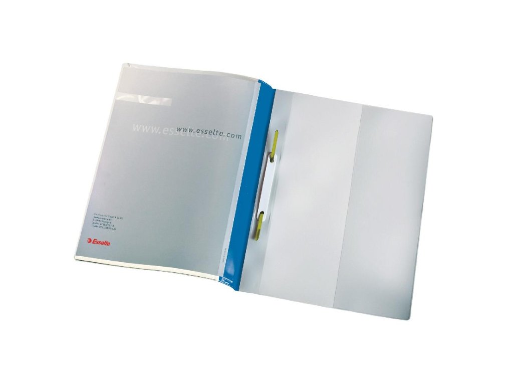 Obal s priehľadným predným a zadným vreckom na vloženie listu, vyrobený z kvalitného PVC. Slúži na uloženie dierovaných dokumentov o formátu A4. Biely papierový zasúvací štítok pozdĺž chrbta slúži na označenie obsahu. Rozmery 310 × 238 mm.V balení 25 ks.