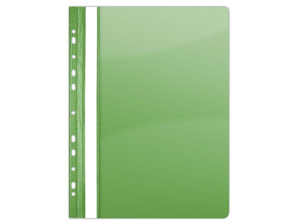 Obal s eurodierovaním z kvalitného polypropylénu na uloženie dierovaných dokumentov do formátu A4. Predná strana priehľadná lesklá, biely papierový zasúvací štítok pozdĺž chrbta. Rozmery 310 × 235 mm. Balenie 10 ks.