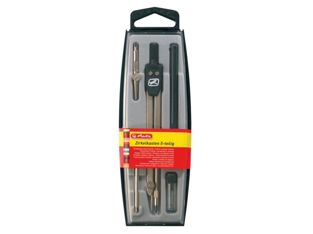 Čierna rysovacia súprava 5 dielna, s náhradnou tuhou.