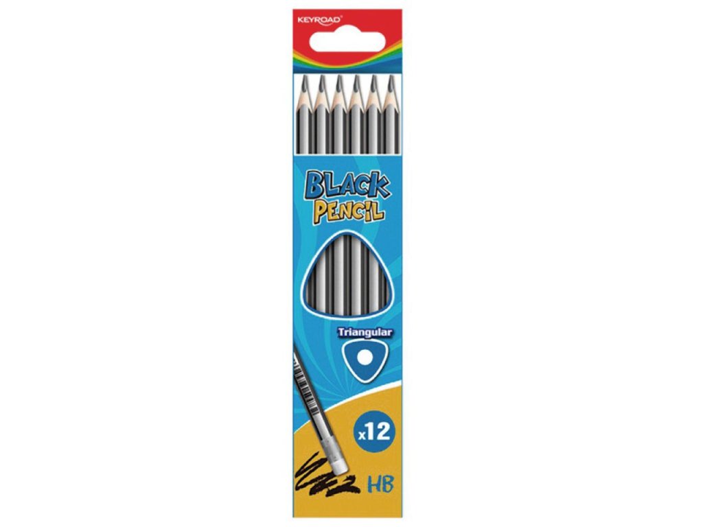 Sada ceruziek KEYROAD drevená s gumou, 12 ks, šedá