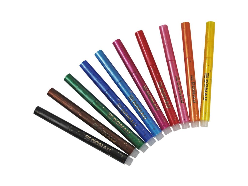 Sada glitrových popisovačov DONAU s vláknovým hrotom 10S. Glitrové popisovače s vláknovitým hrotom, 10 farieb v balení.
