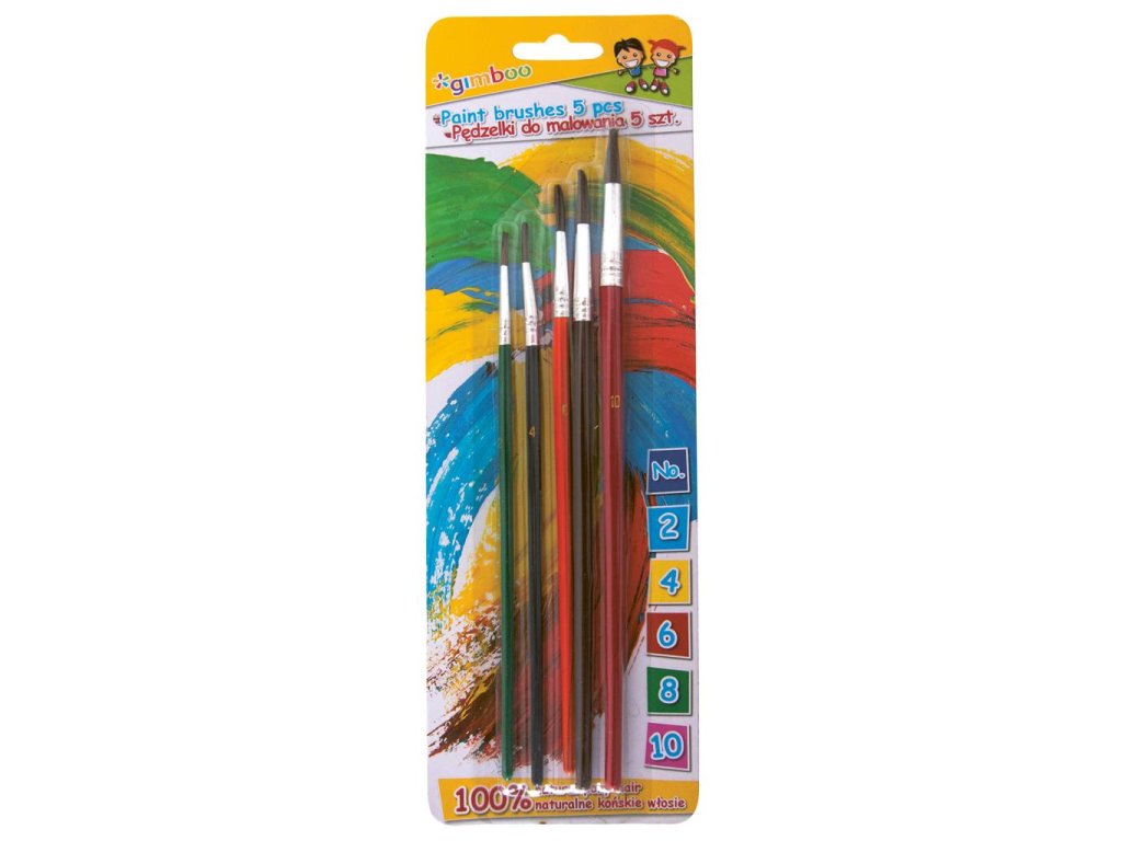 Sada guľatých štetcov s plastovou rúčkou. Balení 5 ks v blistri.