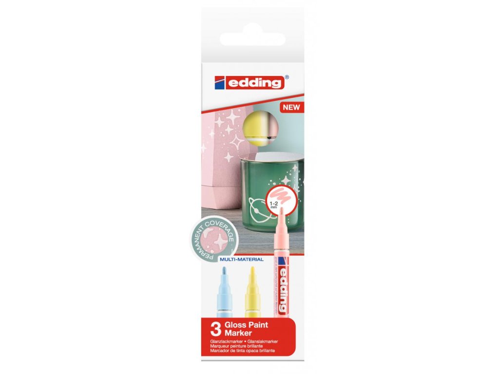 Lakový popisovač s hliníkovým obalom, vhodný pre vodovzdorné písanie, značkovanie a kreslenie na takmer všetky materiály. Hrot okrúhly, šírka stopy 1 - 2 mm. Sada 3 farieb.