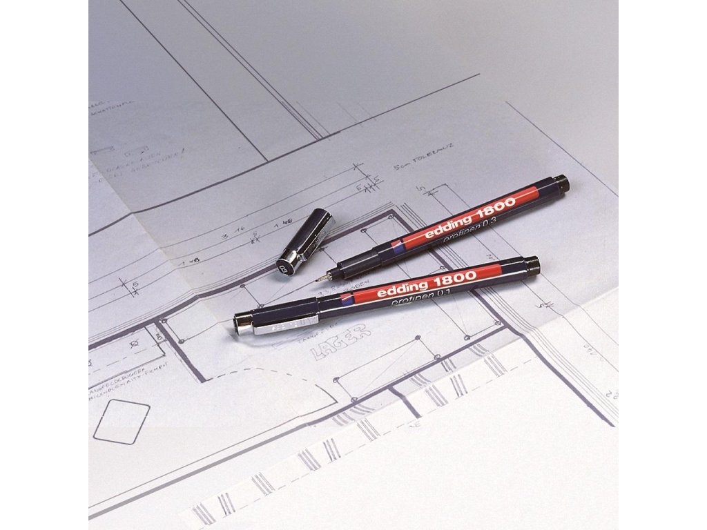 Špeciálny jednorazový popisovač s vláknitým hrotom, kovovým klipom a uzáverom je určený na kreslenie, náčrty, technické kreslenie a pod. Plnený vo vode rozpustným atramentom, ktorý na svetle nebledne. Farba čierna. Balenie sada 3 ks po jednom v hrúbkach 0,1 / 0,3 / 0,5 mm.