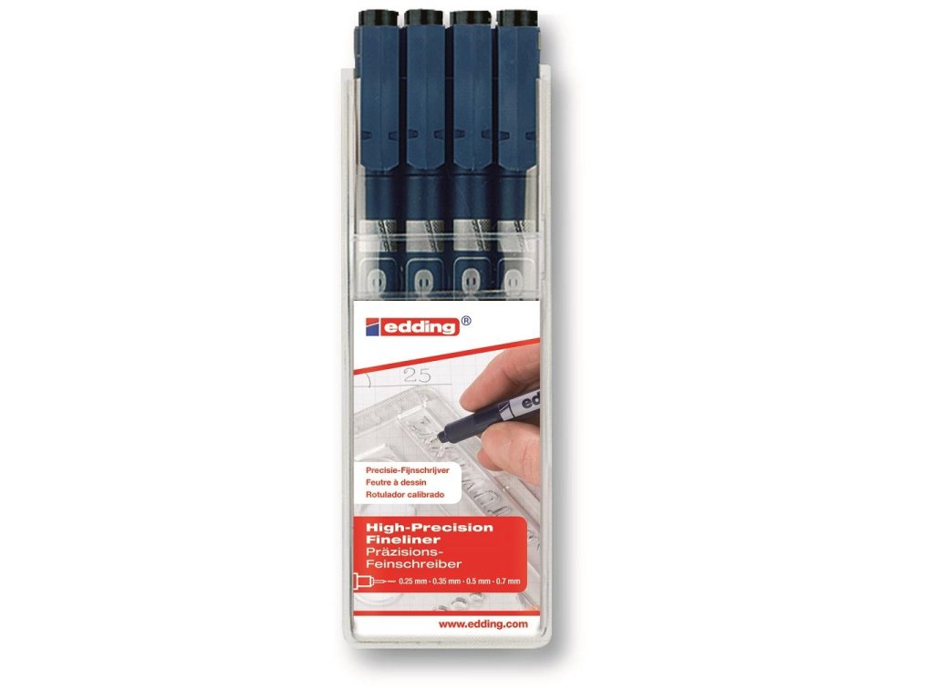 Jednorazový liner s vláknovým hrotom v kovovej objímke so svetlostálym, vode odolným pigmentovým atramentom. Ideálny na náčrty, technické kreslenie a prácu so šablónami. Farba čierna. Sada 4 kusov. Šírky : 0,1 mm, 0,3 mm, 0,5 mm. 0,7 mm.