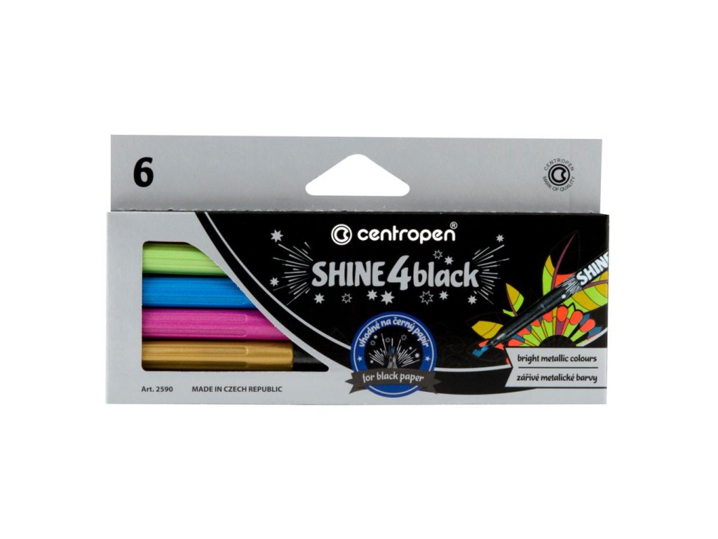 Metalické popisovače so sýtymi atramentmi. Ideálne na vyfarbovanie jemných detailov. Vhodné na použitie na tmavom papieri. Ventilačný uzáver. ERGO držanie. 6 farieb (modrá, zlatá, zelená, červená, ružová, strieborná).