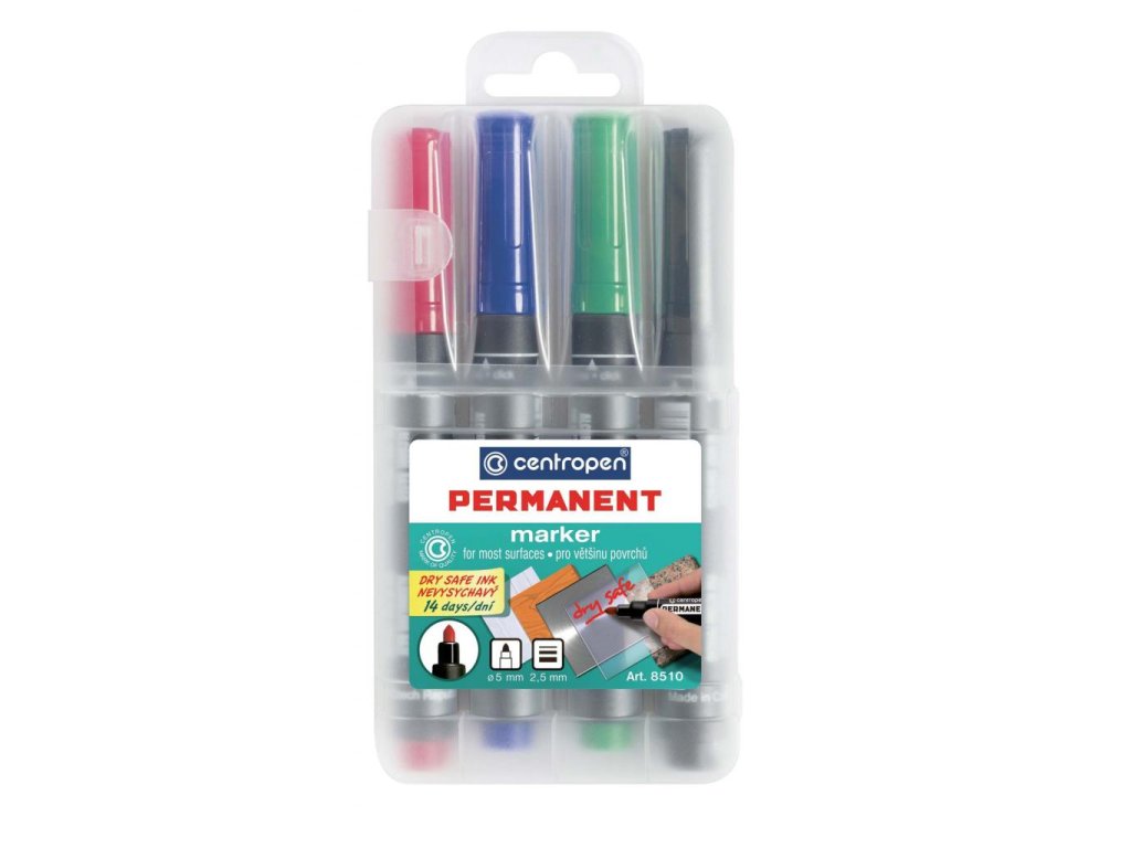 Permanentný popisovač s nevysýchajúcim atramentom (vydrží aj 14 dní bez vrchnáka) na alkoholovej báze, vhodný na väčšinu povrchov. Odolný voči vode, poveternostným podmienkam aj oderu. Hrot okrúhly, šírka stopy 2,5 mm. Väčšie balenie 10 ks v jednej farbe. Farba 4x mix.